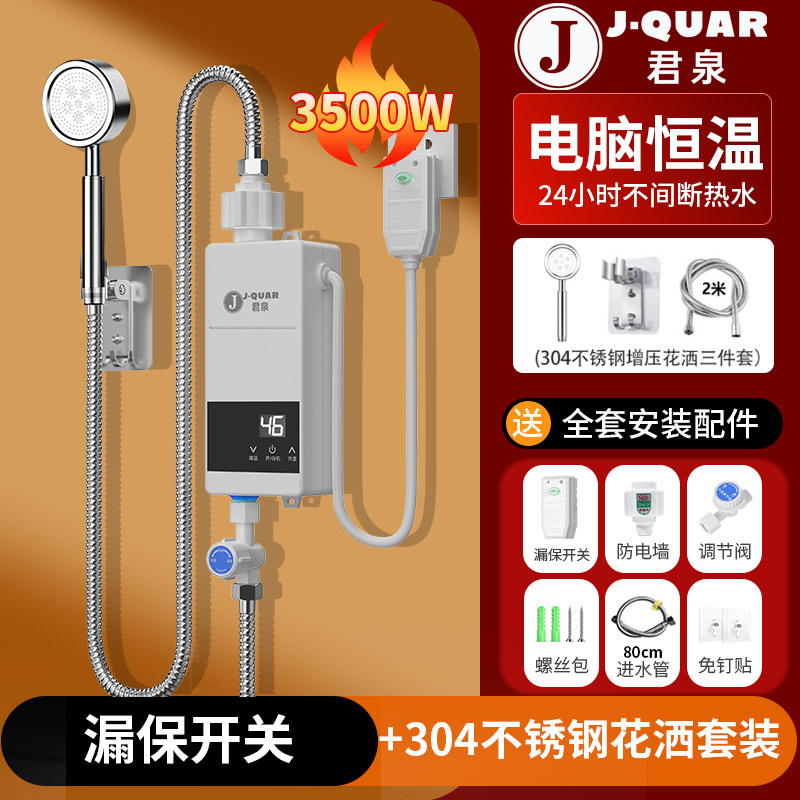 君泉(JunQuan)即热式电热水器家用小型超薄过水速热卫生间淋浴洗澡智能恒温快热式