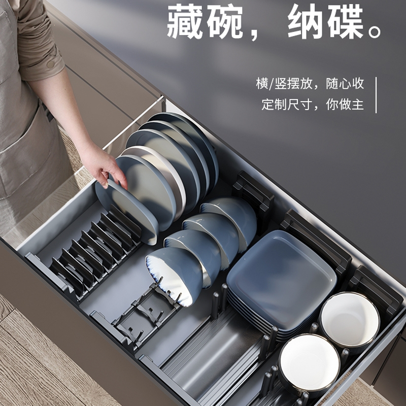 厨房橱柜内置碗架魅扣柜内抽屉收纳碗碟碗盘分隔锅具收纳架置物架