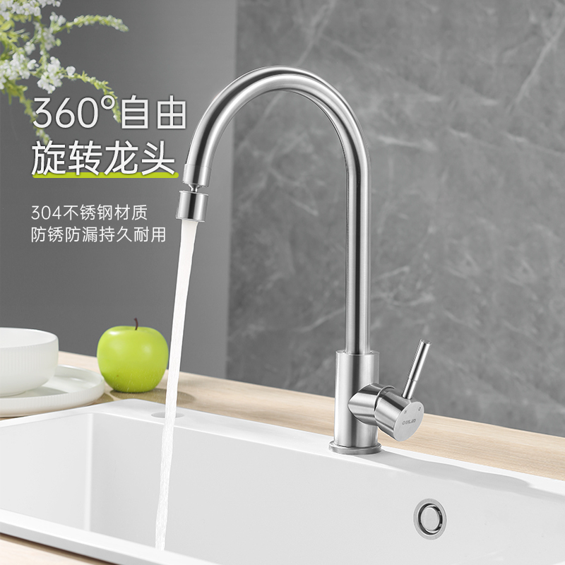 欧琳(OULIN)厨房龙头CFX001 不锈钢主体洗菜盆冷热水龙头 可旋转水槽龙头 不锈钢厨房龙头