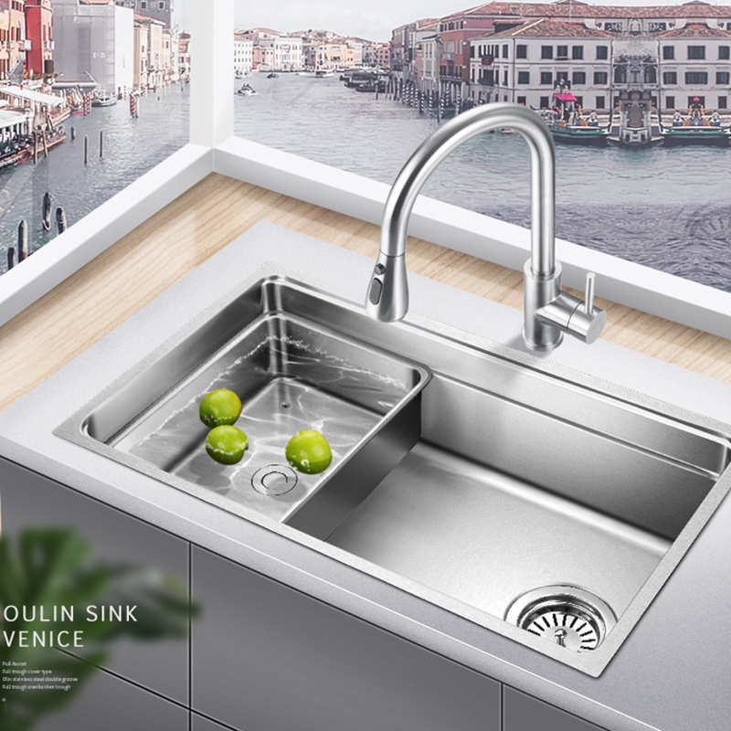 欧琳水槽单槽 复式单槽9102 304不锈钢水槽单槽 厨房水槽 洗菜盆