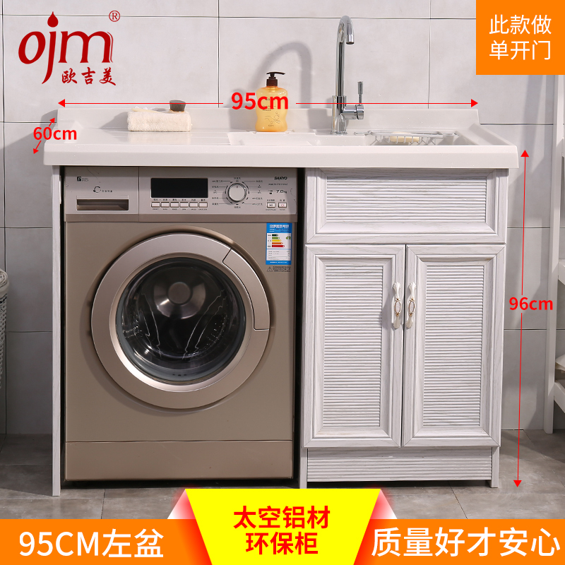 欧吉美 橡木滚筒洗衣机柜阳台实木洗衣柜池槽伴侣洗衣盆带搓板浴室柜组合