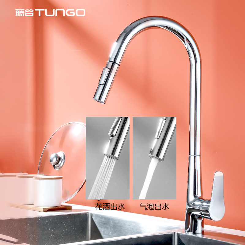 藤谷/TUNGO 厨房水龙头冷热 304不锈钢抽拉式龙头防溅水 360°旋转水槽洗菜盆水龙头