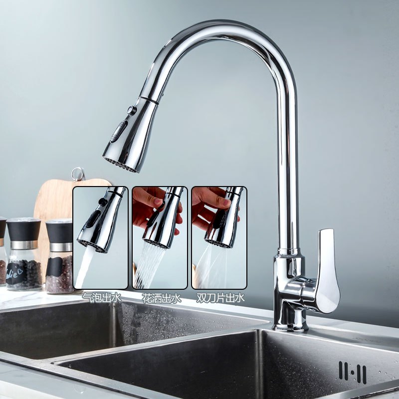 藤谷 枪灰色厨房水龙头冷热 三种出水304不锈钢抽拉式龙头 360°旋转洗菜盆洗碗池水槽家用防溅龙头