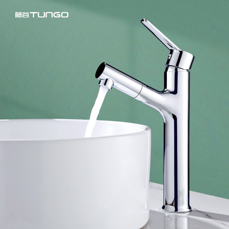 藤谷 加高台上盆抽拉式面盆水龙头精铜冷热龙头卫生间洗头伸缩洗脸盆龙头